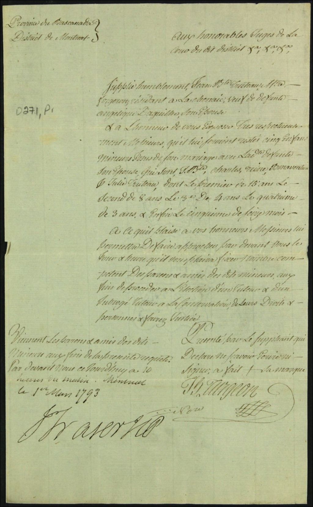 - Tutelle des enfants mineurs de feu Angélique Daguilhe [Angélique Daguilde] et de Jean Baptiste Truteau [Jean Baptiste Trudeau]