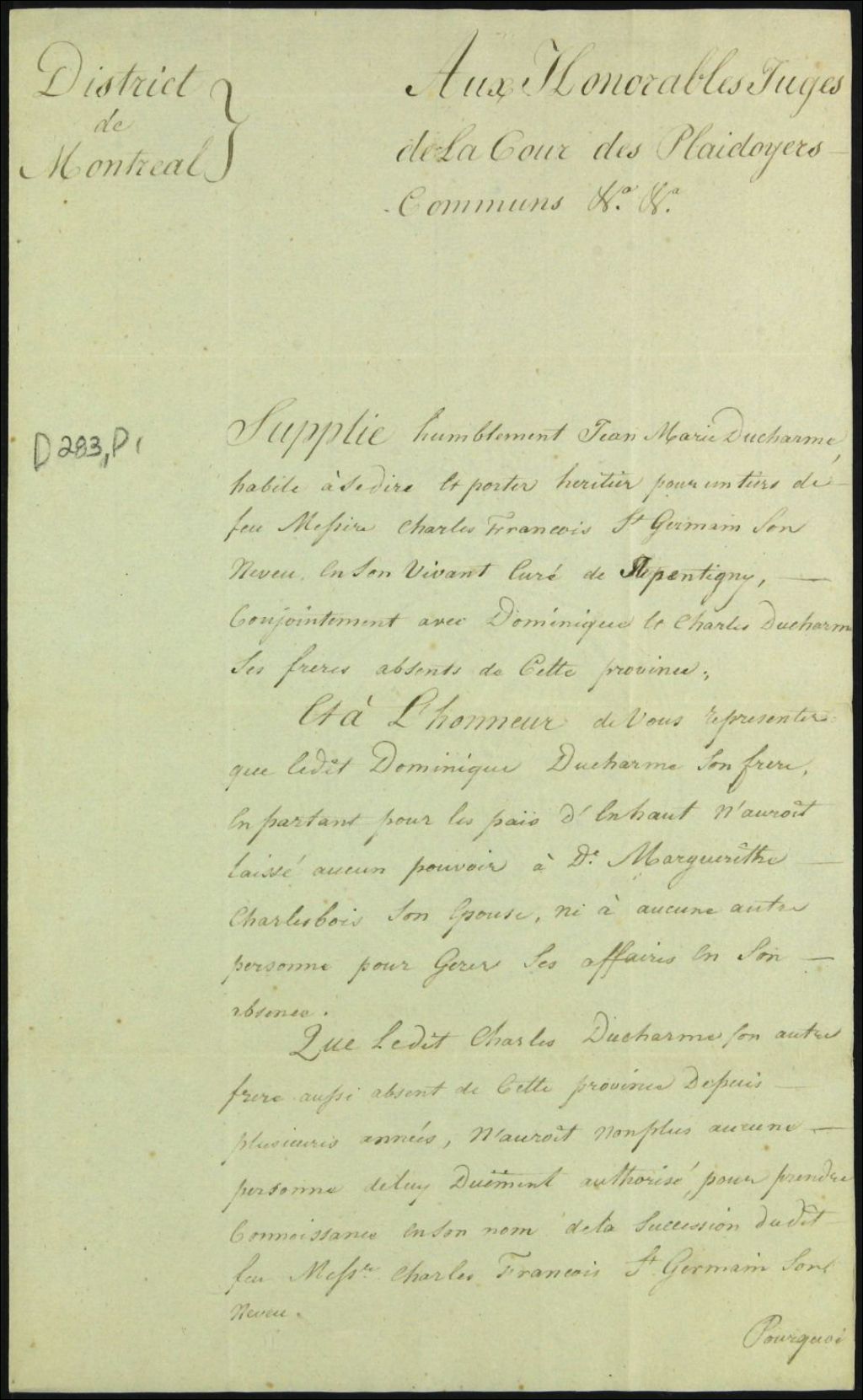 - Curatelle de Domique Ducharme et Charles Ducharme