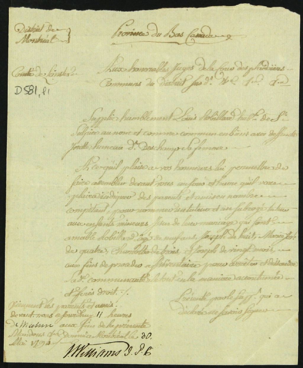 - Tutelle des enfants mineurs de feu Josèphe Hunault Deschamps et de Louis Robillard