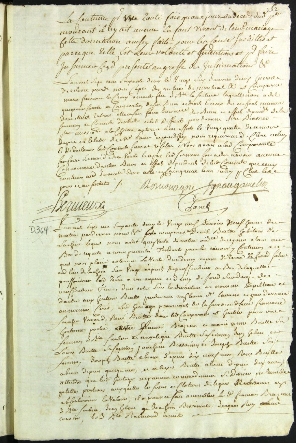 Autorisation de vendre des biens dépendant de la succession des défunts René Buette [René Buet] et Françoise Foucher en l'absence prolongée des héritiers Joseph Buet, René Buet et Alexis Buet, 29 janvier 1762, Archives nationales à Montréal, Fonds Cour supérieure. District judiciaire de Montréal. Procédures en matières non contentieuses, (06M,CP601,S4,SS1,D364).