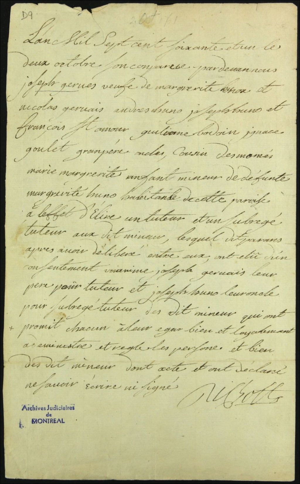 Tutelle des enfants mineurs de feu Marguerite Huno [Marguerite Hénault Deschamps Hunault] et de Joseph Gervais