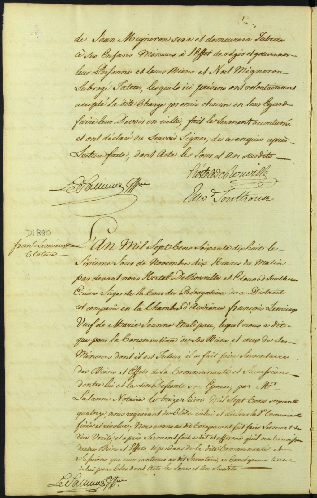 Clôture d'inventaire des biens de la succession et de la communauté de feu Marie Jeanne [Matignon ?] et François Lemieux
