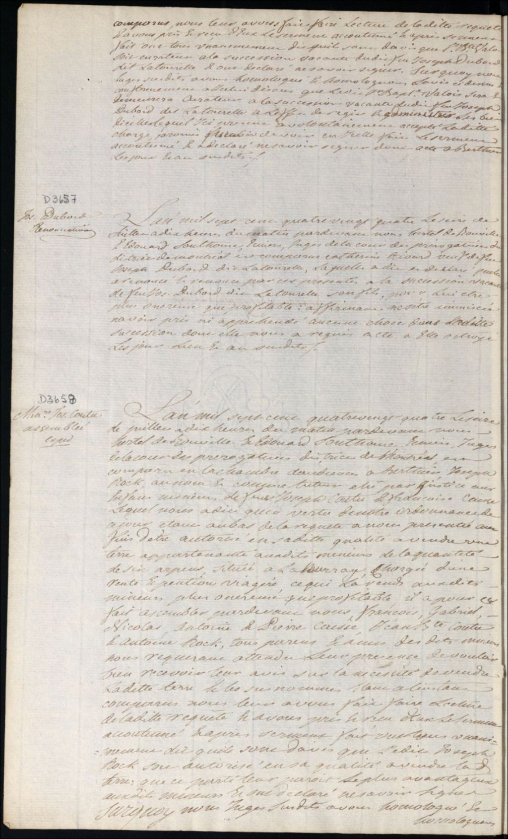 Renonciation de Catherine Rivard à la succession de feu Joseph Dubord Latourelle