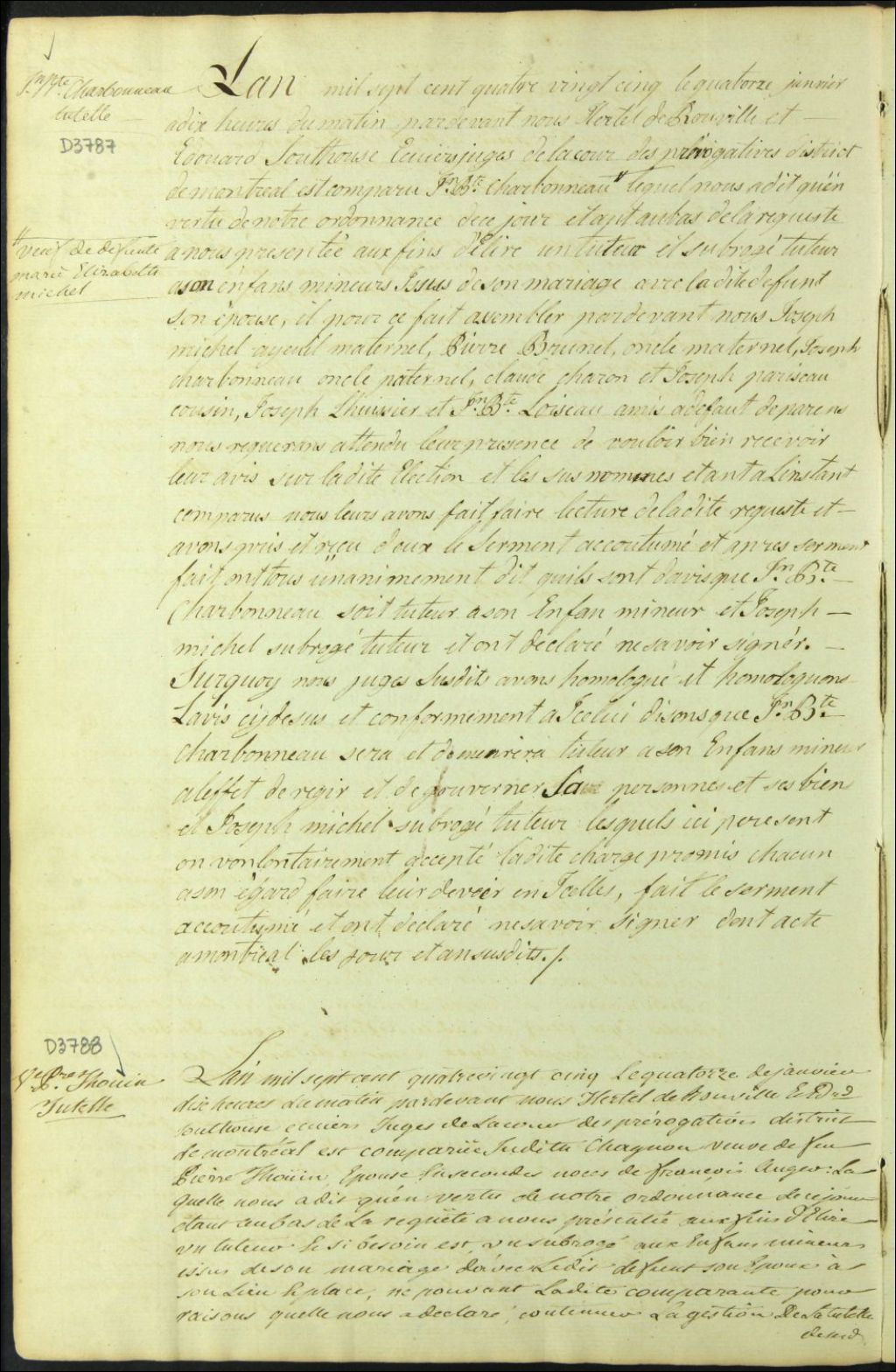 Tutelle de l'enfant mineur de feu Marie Élisabeth Michel et de Jean Baptiste Charbonneau