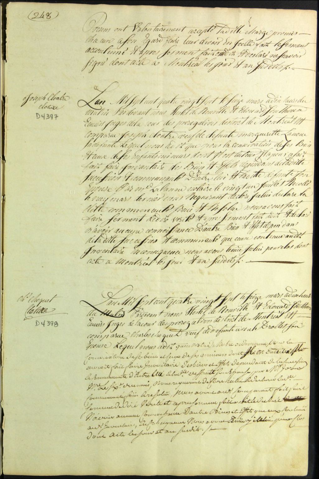 Clôture d'inventaire des biens de la succession et de la communauté de feu Marguerite Lanoue et Joseph Clo[u]atre