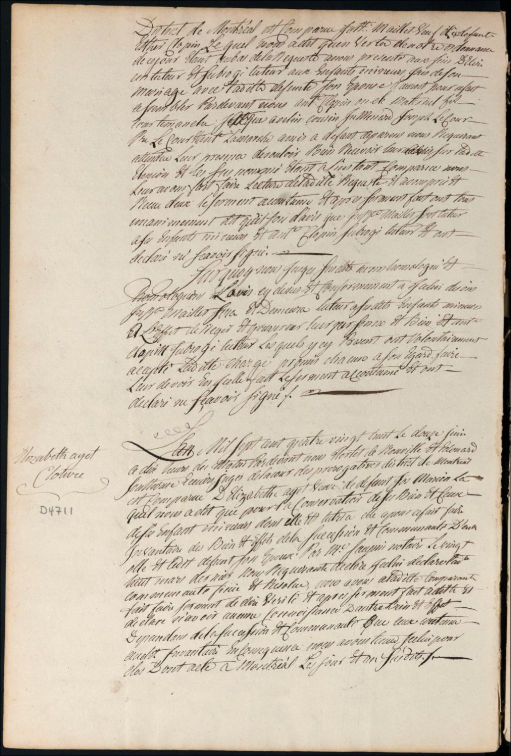 Clôture d'inventaire des biens de la succession et de la communauté de feu Joseph Marion et Élisabeth [H]ayet, 12 juin 1788, Archives nationales à Montréal, Fonds Cour supérieure. District judiciaire de Montréal. Procédures en matières non contentieuses, (06M,CP601,S5,D4711).