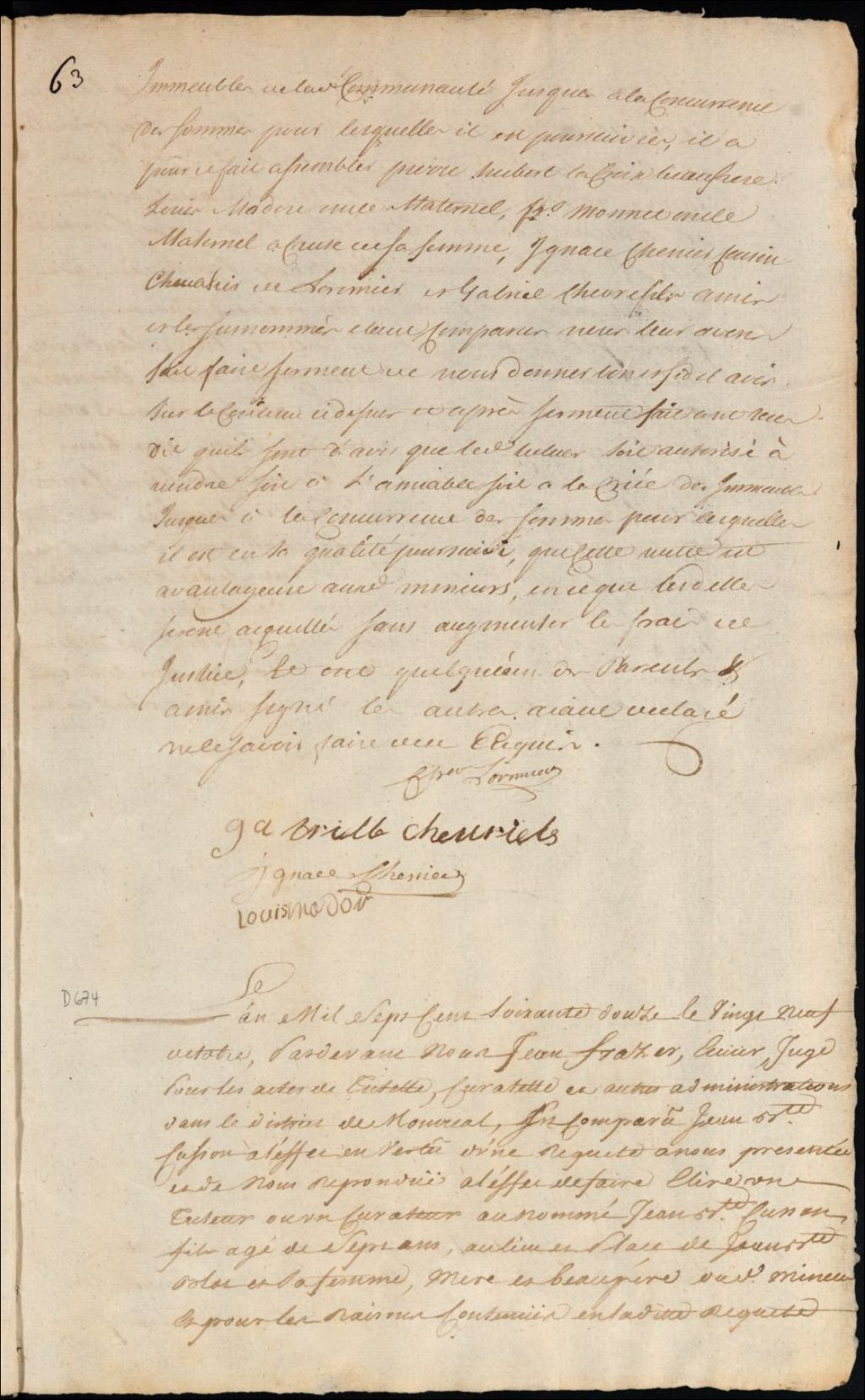 Tutelle ou curatelle de l'enfant mineur de feu Adrien Cusson et de [Marie Charlotte Robin Lapointe], 29 octobre 1772, Archives nationales à Montréal, Fonds Cour supérieure. District judiciaire de Montréal. Procédures en matières non contentieuses, (06M,CP601,S5,D674).