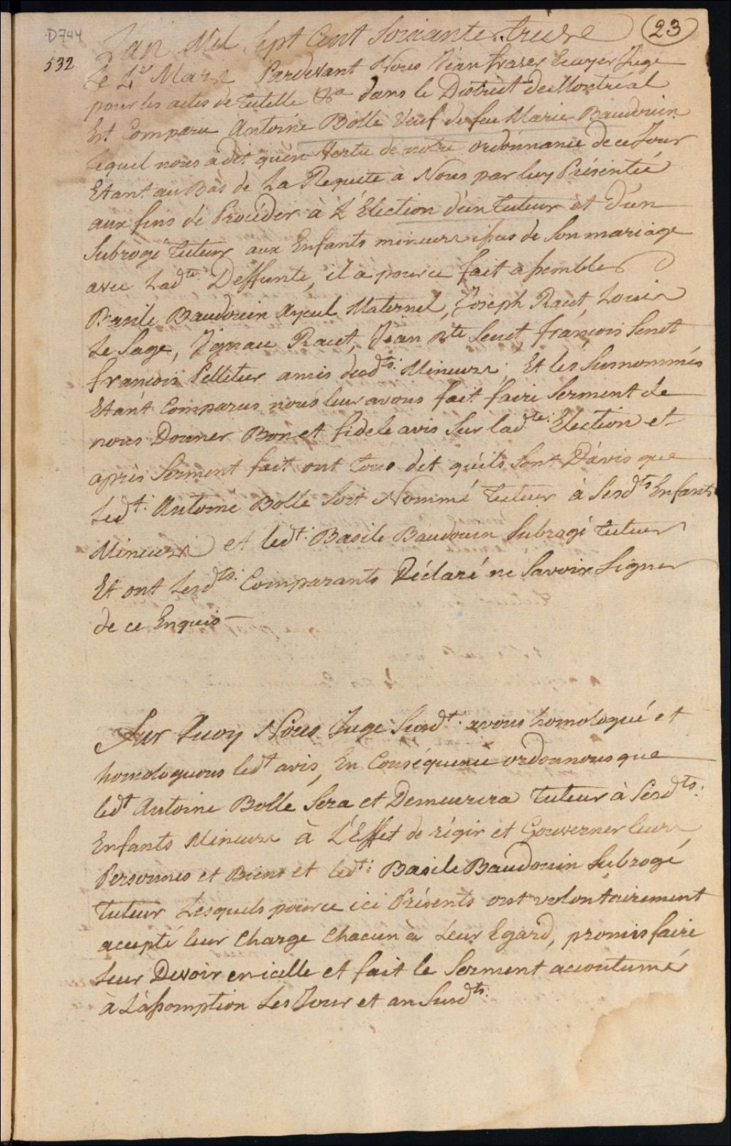Tutelle des enfants mineurs de feu Marie Baudouin et d'Antoine Bole
