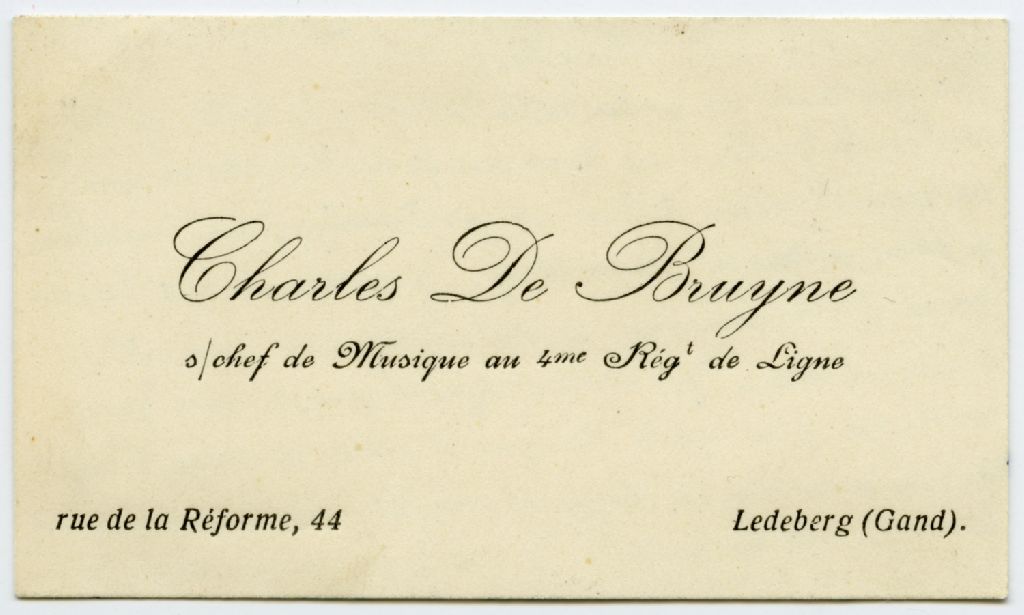 Carte de visite de Charles de Bruyne, 1 octobre 1927, Archives nationales à Rimouski, Fonds Gabrielle Pellerin, (01R,P29,D111,P6).