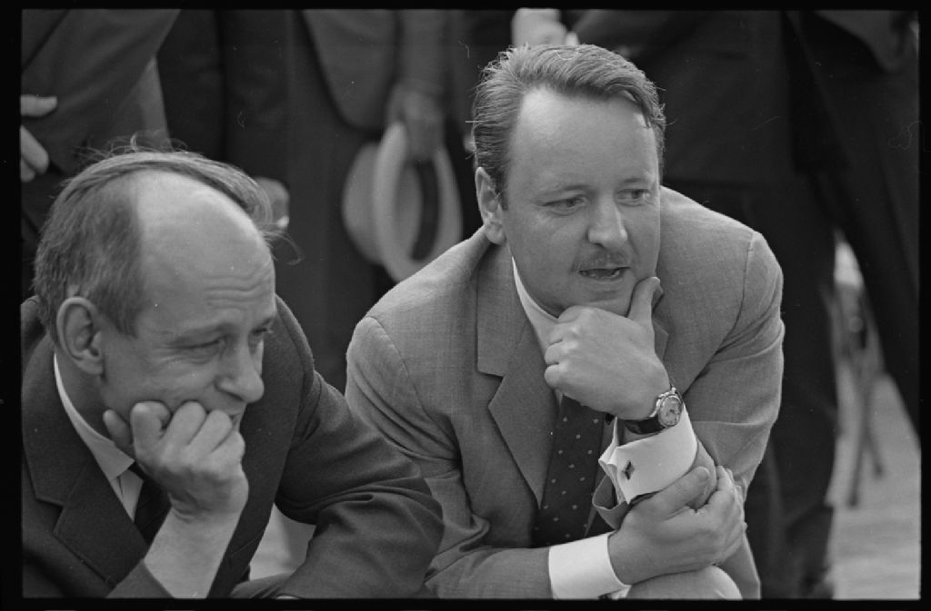 René Lévesque et Yves Michaud, 1967, Archives nationales à Québec, Fonds Jules Rochon, (03Q,P743,P286), Jules Rochon.