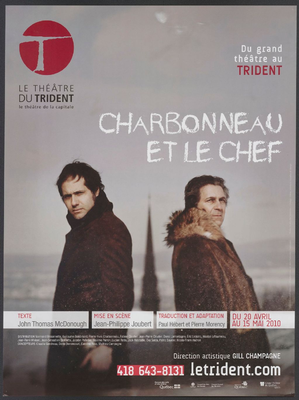 Charbonneau et le chef : du grand théâtre au Trident : texte John Thomas McDonough, mise en scène Jean-Philippe Joubert, traduction et adaptation Paul Hébert et Pierre Morency, du 20 avril au 15 mai 2010