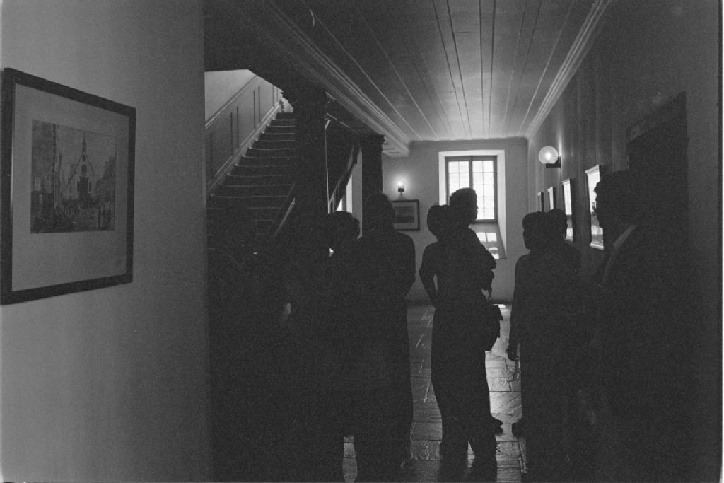Semaine du patrimoine ; visites guidées du séminaire de Québec et démonstration de filage de la laine à Place Royale, 1977-06-23, Archives nationales à Québec, Fonds Ministère des Communications, (03Q,E10,S44,SS1,D77-450), Daniel Lessard.