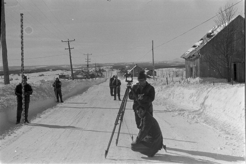 Arpentage routier en système métrique à Beauceville, 1978-02-08, Archives nationales à Québec, Fonds Ministère des Communications, (03Q,E10,S44,SS1,D78-103), Claude Gaboury.