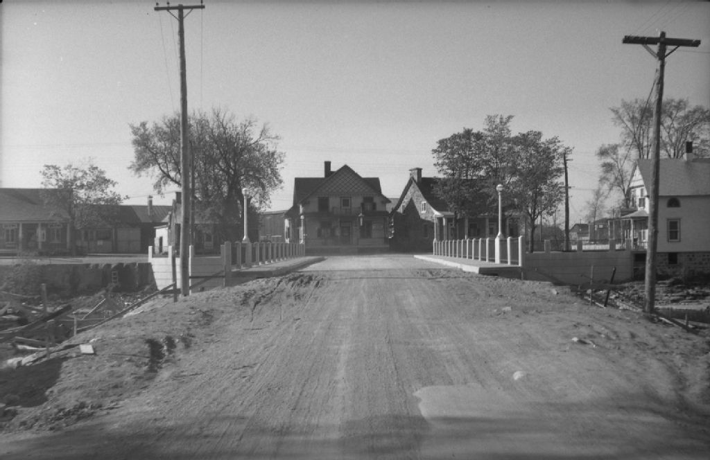 Pont Lynch sur la rivière l'Achigan à l'Épiphanie, comté l'Assomption, 1949, Archives nationales à Québec, Fonds Ministère de la Culture et des Communications, (03Q,E6,S7,SS1,D2,P69162), Camille Milot.
