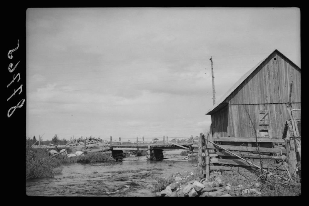 Vue aval du pont nord ouest de l'église, Saint-Bruno-de-Kamouraska, 1951, Archives nationales à Québec, Fonds Ministère de la Culture et des Communications, (03Q,E6,S7,SS1,D2,P87765), Marc Dugal.