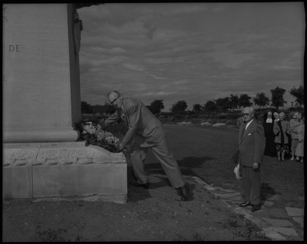 Dépôt de fleurs au monument Jeanne d'Arc, parc des Champs de Bataille à Québec