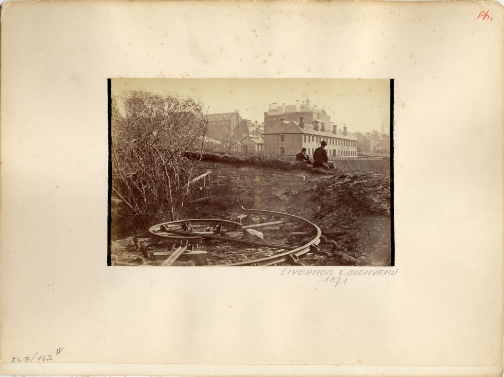 Québec, Québec - Fortifications - Les casernes de la rue des Glacis, [1871?], Archives nationales à Québec, Fonds ministère de la Culture et des Communications, (03Q,E6,S8,SS6,P462), Livernois & Bienvenu.