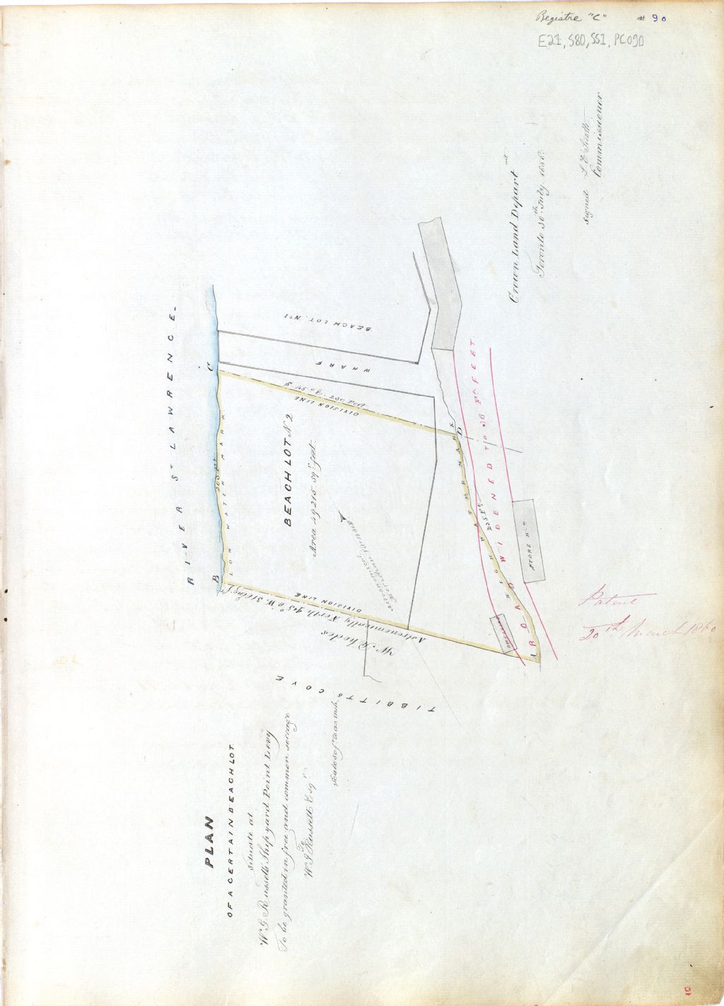 Plan of a certain beach lot situate at W.G. Russell's shipyard Point Levy to be granted in free and common soccage to W.G. Russell, Esq.