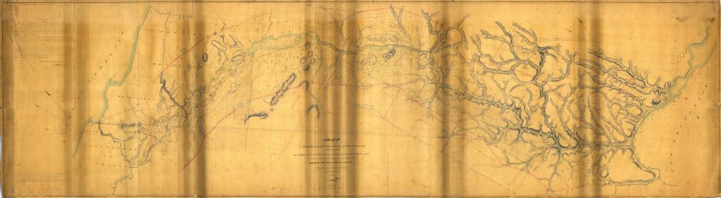 Map exibiting the character of the country between the rivers St-Lawrence and Restigouche on each side of the proposed site of the Quebec and Halifax railroad.