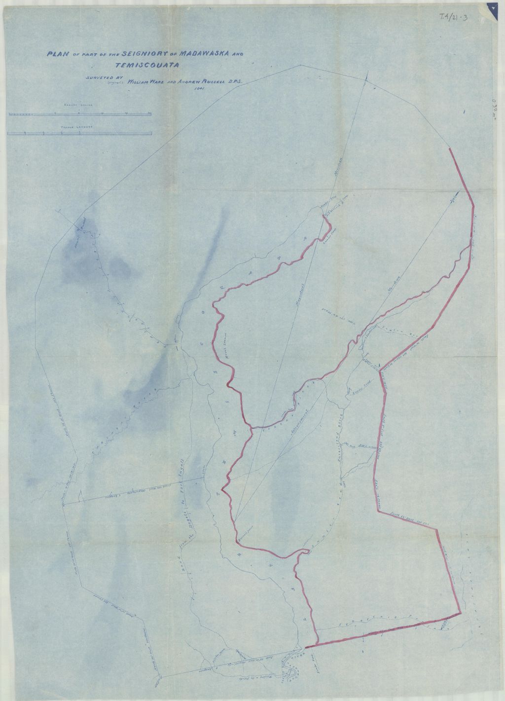 Plan of part of the Seigniory of Madawaska and Temiscouata. Surveyed by (signed) William Ware and Andrew Russell D.P.S. 1841