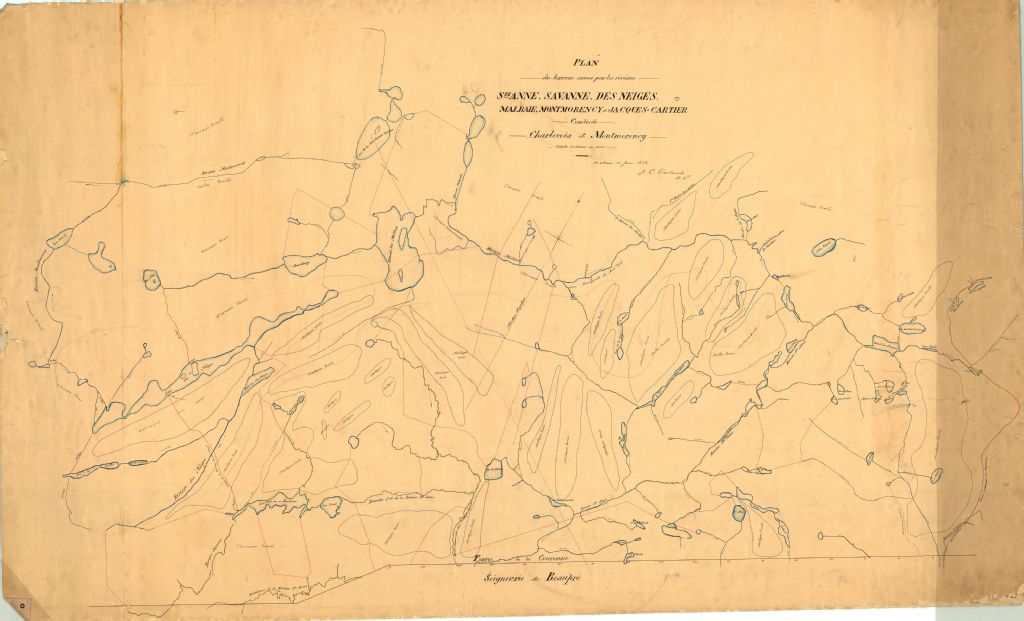 Seigneurie Côte-de-Beaupré, Plan des terrains arrosé par les rivières Ste-Anne, Savanne, Des Neiges, Malbaie, Montmorency et Jacques-Cartier, Comtés de Charlevoix - Montmorency.