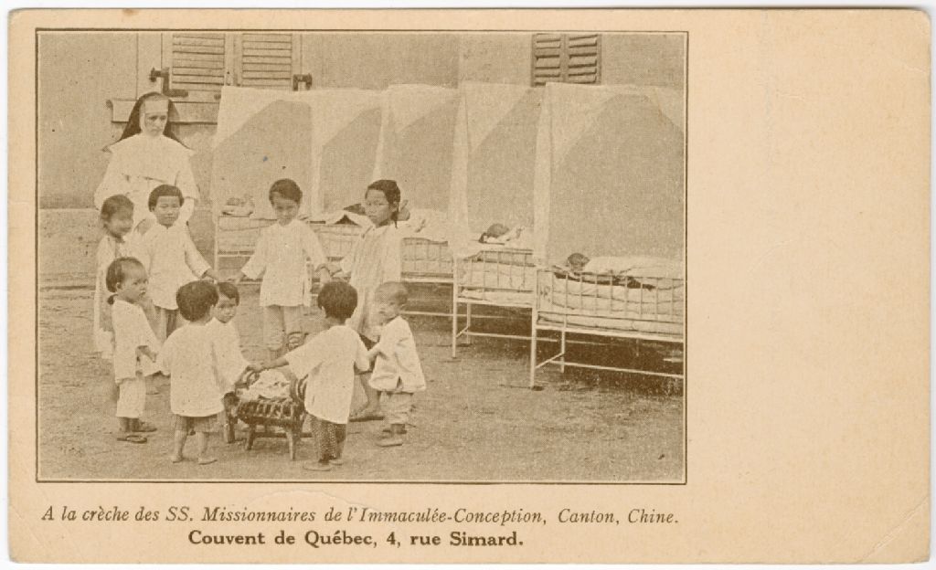 À la crèche des Soeurs Missionnaires de l'Immaculée-Conception, 23 mars 1927, Archives nationales à Québec, Collection Florence Sylvain-Daigle, (03Q,P694,P43), Photographe non identifié.