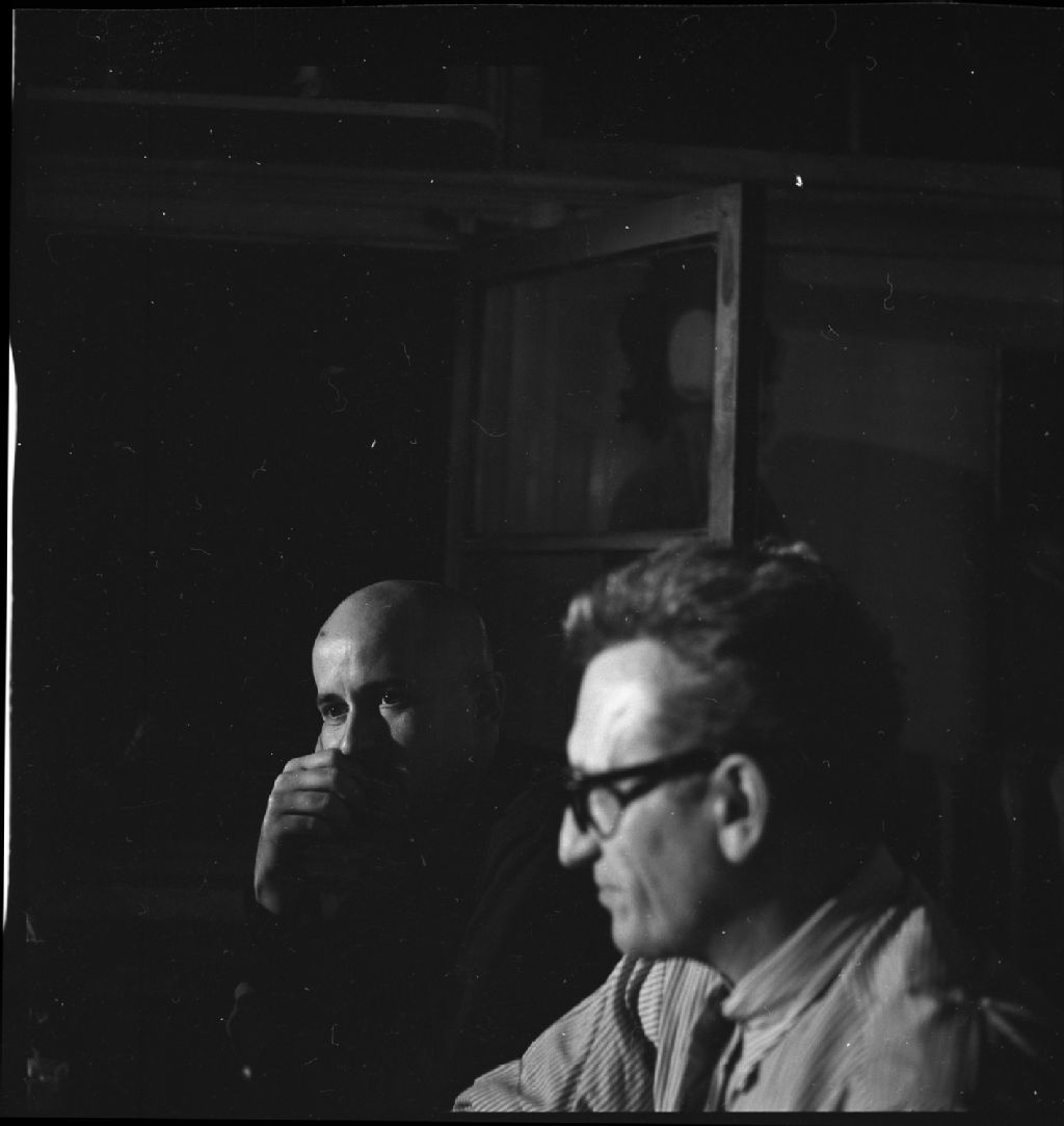Photo prise lors d'une rencontre entre poètes, peintres et acteurs organisée par Paul Gouin et Jean Palardy, historien de l'art, au domicile de Palardy et de sa femme, la peintre Jori Smith