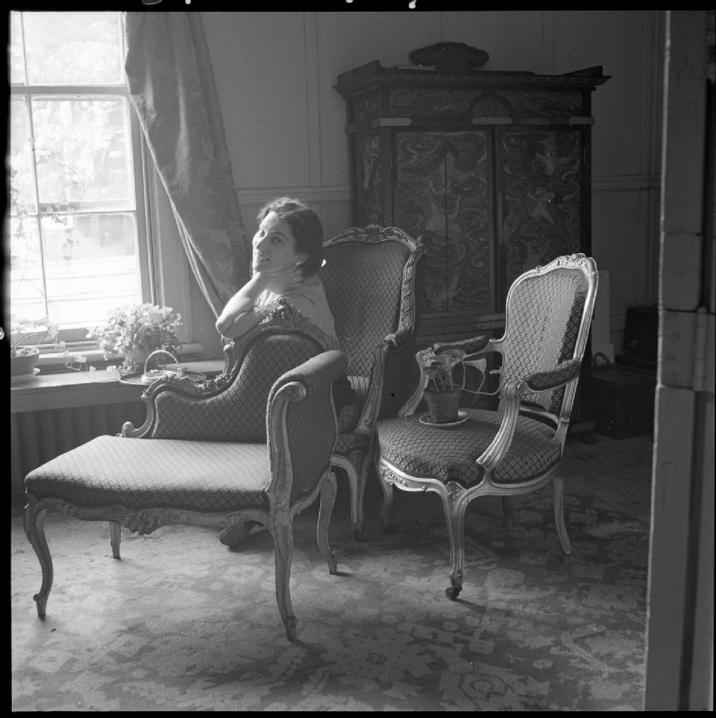 Lida Moser dans un bureau du Montreal Repertory Theatre, 1950, Archives nationales à Québec, Fonds Lida Moser, (03Q,P728,S1,D2,P4-14), Lida Moser.