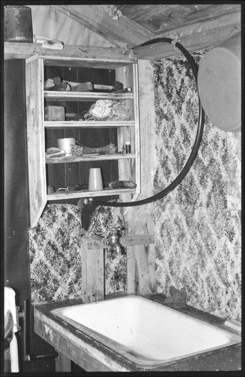 Évier et armoire, pièce de production, coin nord-est, 1981, Archives nationales à Québec, Fonds Guy Giguère, (03Q,P640,D22,P20), Guy Guiguère.
