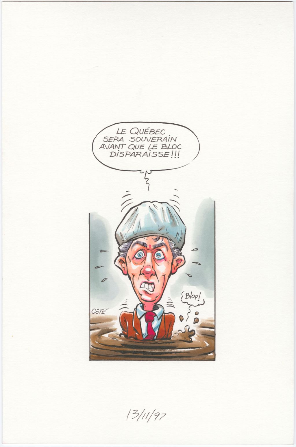 [Duceppe] : "Le Québec sera souverain avant que le Bloc disparaisse!!!", 13 novembre 1997, Archives nationales à Québec, Fonds André-Philippe Côté, (03Q,P687,S1,P97-11-13), André-Philippe Côté.