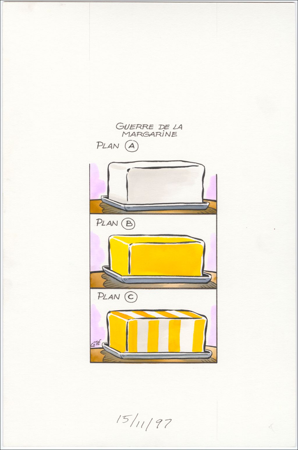 Guerre de la margarine, 15 novembre 1997, Archives nationales à Québec, Fonds André-Philippe Côté, (03Q,P687,S1,P97-11-15-1), André-Philippe Côté.