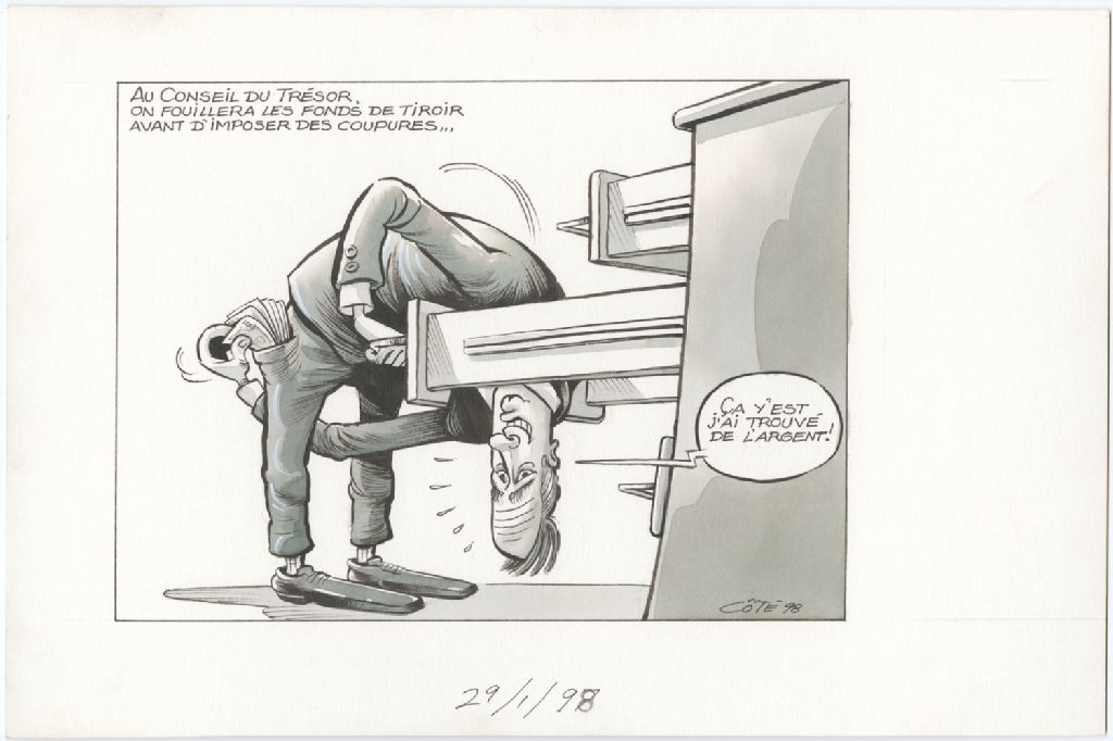 Au Conseil du trésor, on fouillera les fonds de tiroir avant d'imposer des coupures… [Jacques Léonard] : "Ça y'est, j'ai trouvé de l'argent!"