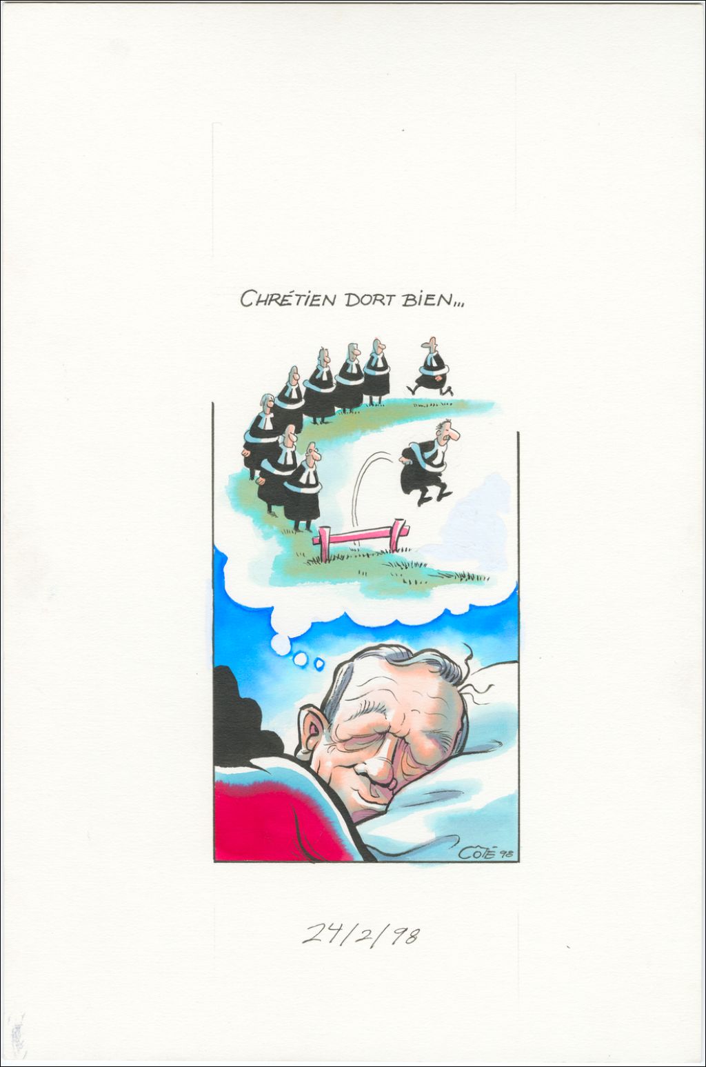 Chrétien dort bien… [Jean Chrétien dort et compte les juges au lieu de compter les moutons], 24 février 1998, Archives nationales à Québec, Fonds André-Philippe Côté, (03Q,P687,S1,P98-02-24), André-Philippe Côté.