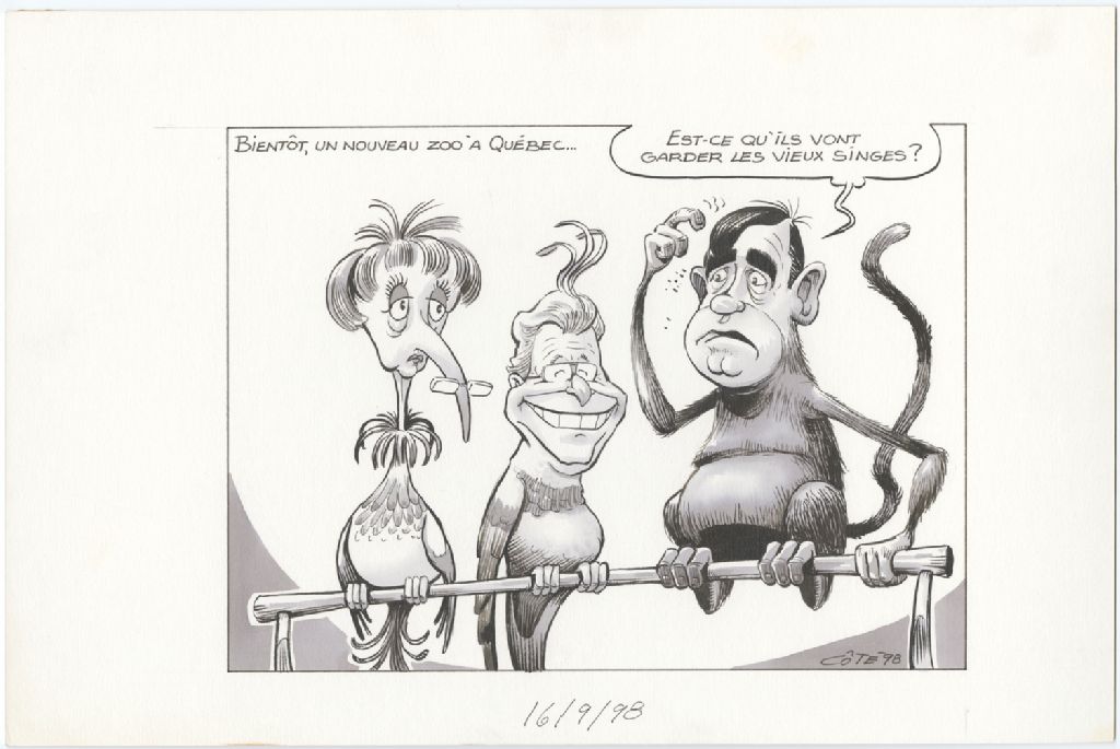 Bientôt, un nouveau zoo à Québec… [Lucien Bouchard] : "Est-ce qu'ils vont garder les vieux singes?", 16 septembre 1998, Archives nationales à Québec, Fonds André-Philippe Côté, (03Q,P687,S1,P98-09-16), André-Philippe Côté.