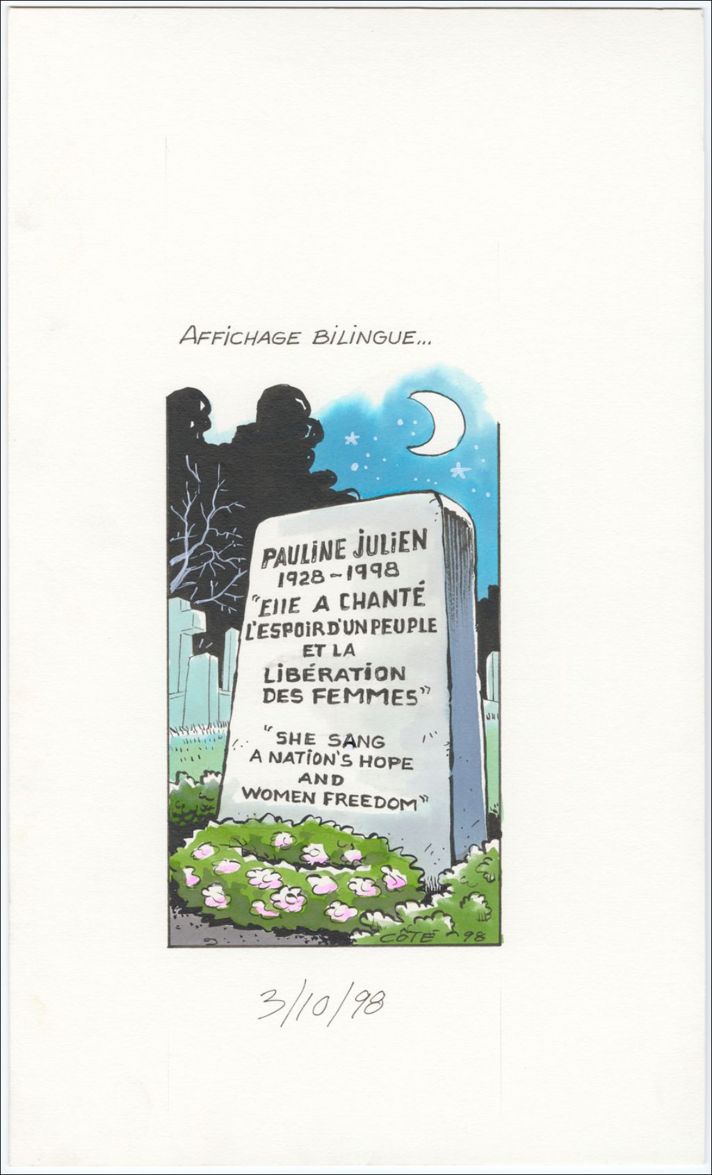 On peut voir une tombe :Pauline Julien1928-1998"Elle a chanté l'espoir d'un peuple et la libération des femmes""She sang a nation's hope and women freedom"