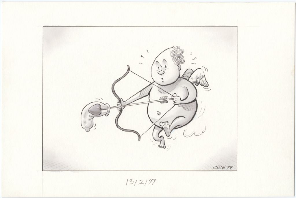 [Cupidon lance une flèche et au bout de cette dernière, il y a un préservatif]