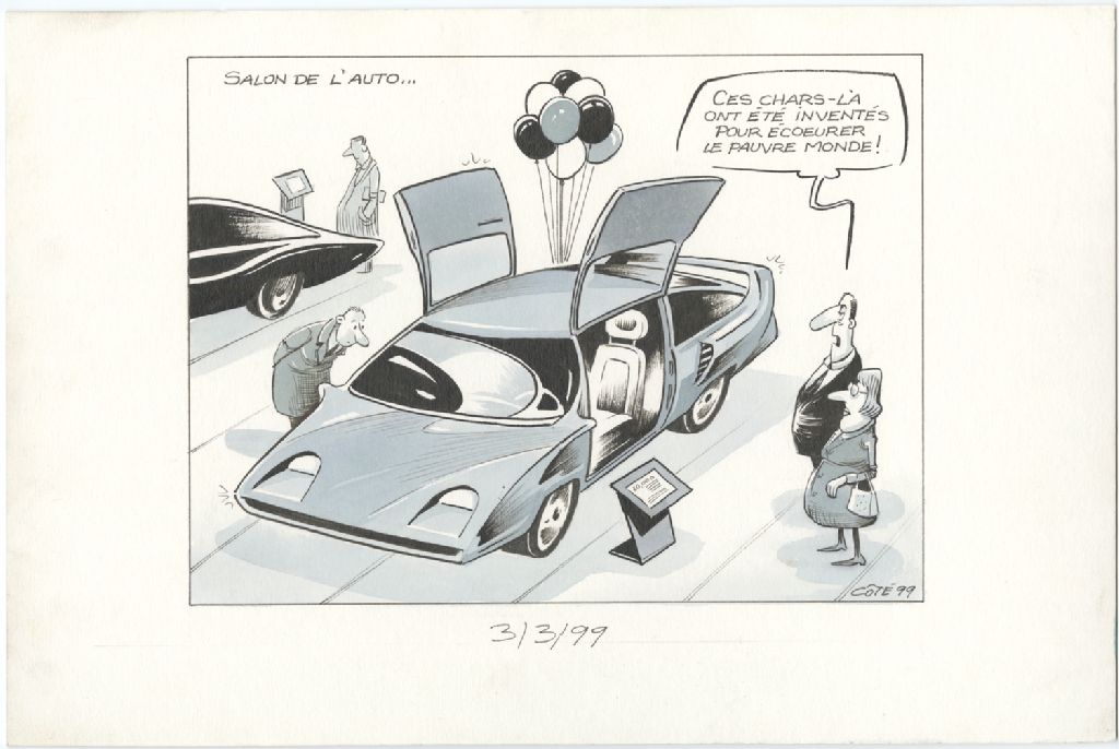 Salon de l'auto… [Homme] : « Ces chars-là ont été inventés pour écoeurer le pauvre monde ! »