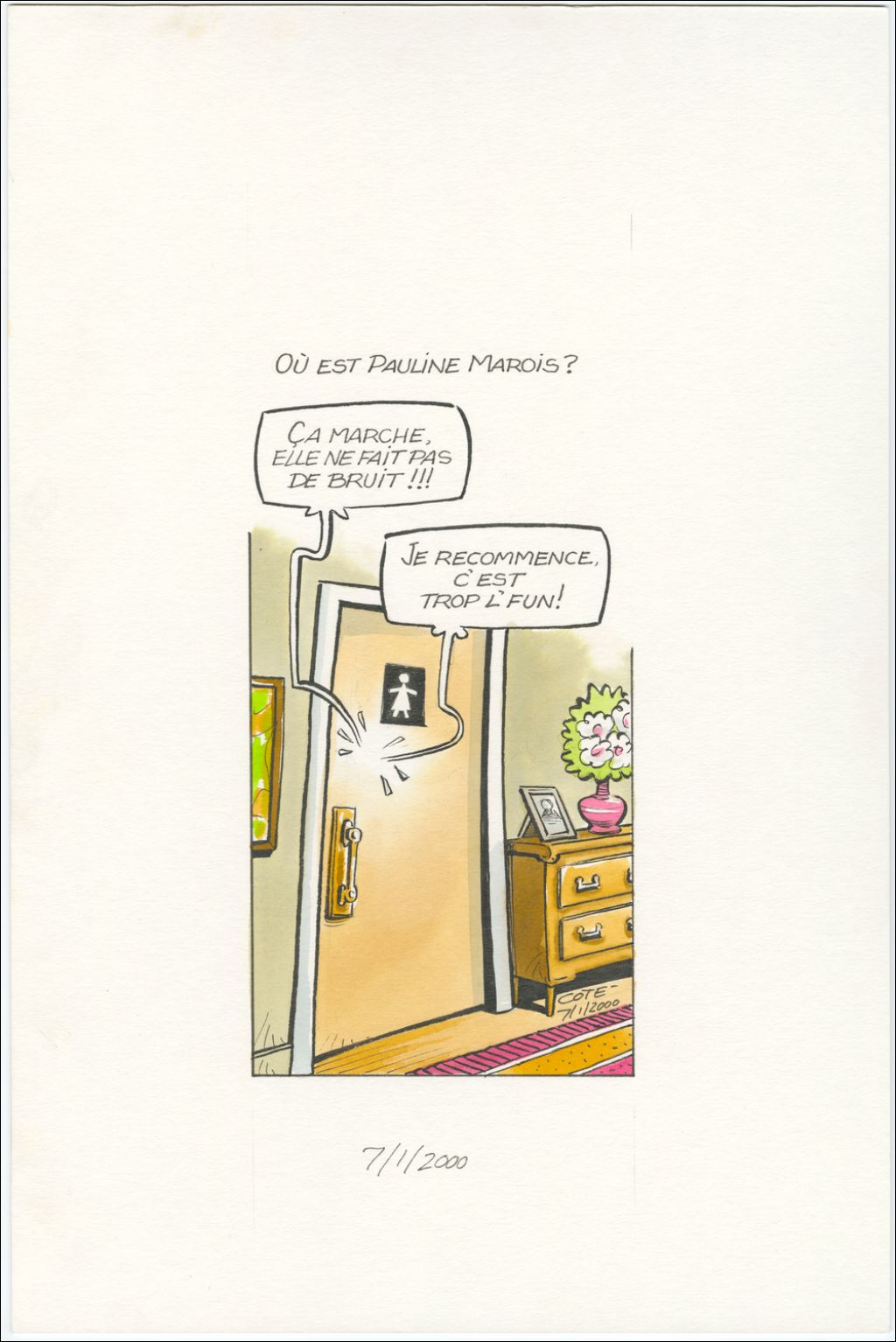 Où est Pauline Marois ? [Pauline Marois à la salle de bain] : « Ça marche, elle ne fait pas de bruit !!! Je recommence, c'est trop l'fun ! »