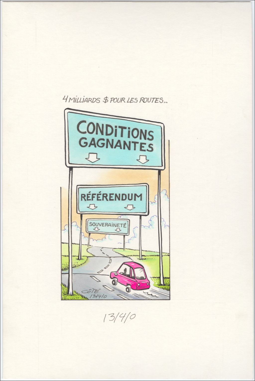 4 milliards $ pour les routes, 13 avril 2000, Archives nationales à Québec, Fonds André-Philippe Côté, (03Q,P687,S1,P2000-04-13), André-Philippe Côté.
