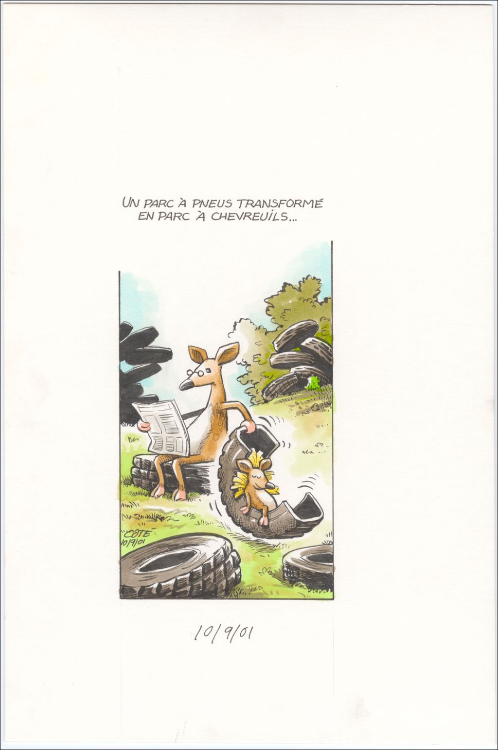 Un parc à pneus transformé en parc à chevreuils, 10 septembre 2001, Archives nationales à Québec, Fonds André-Philippe Côté, (03Q,P687,S1,P2001-09-10), André-Philippe Côté.