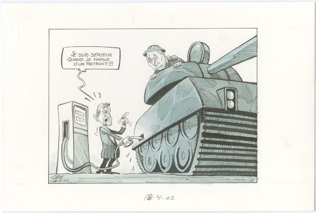 [Plein d'essence d'un char d'assaut], 18 avril 2002, Archives nationales à Québec, Fonds André-Philippe Côté, (03Q,P687,S1,P2002-04-18), André-Philippe Côté.