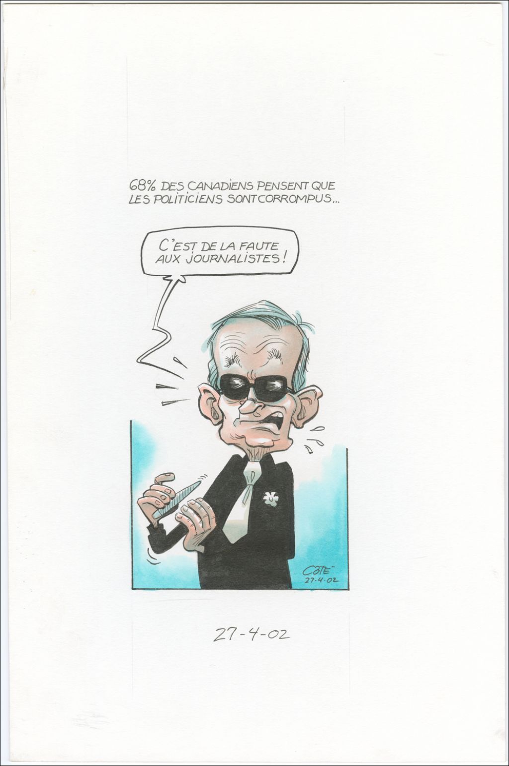 68% de canadiens pensent que les politiciens sont corrompus, 27 avril 2002, Archives nationales à Québec, Fonds André-Philippe Côté, (03Q,P687,S1,P2002-04-27), André-Philippe Côté.