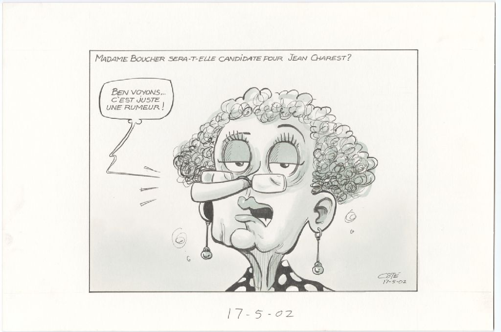 Madame Boucher sera-t-elle candidate pour Jean Charest, 17 mai 2002, Archives nationales à Québec, Fonds André-Philippe Côté, (03Q,P687,S1,P2002-05-17-1), André-Philippe Côté.