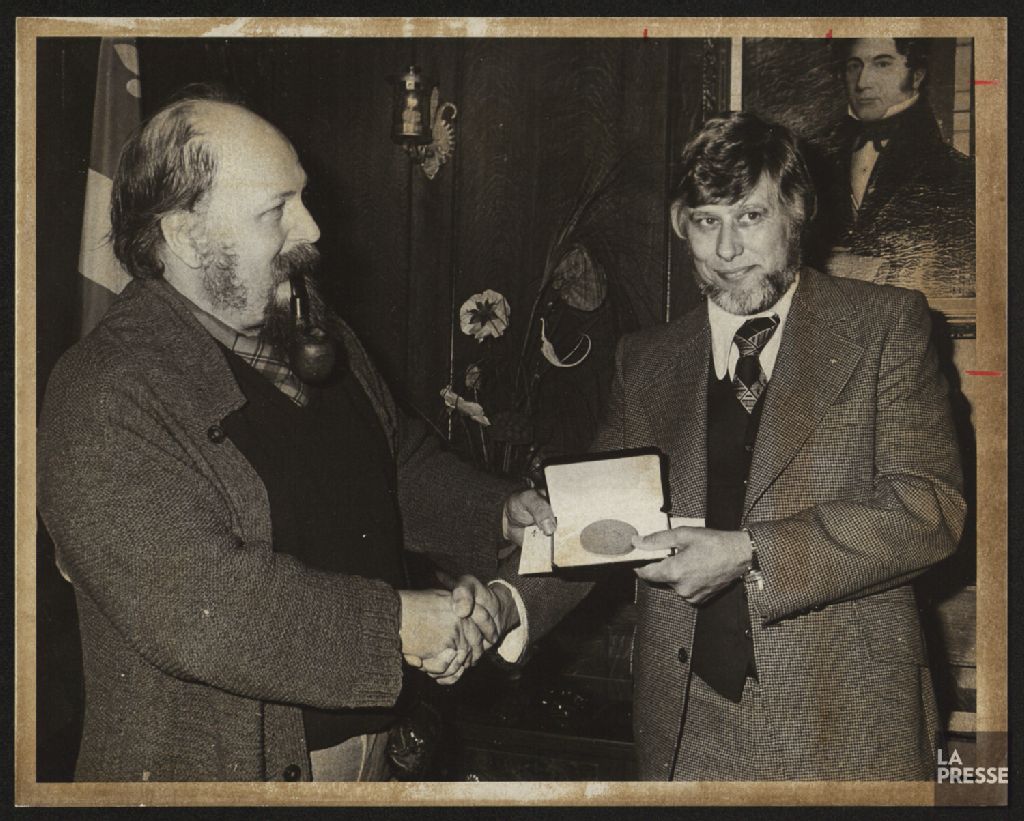Un document montre Jean-Claude Champagne recevant une médaille des mains de Jean-Claude Germain