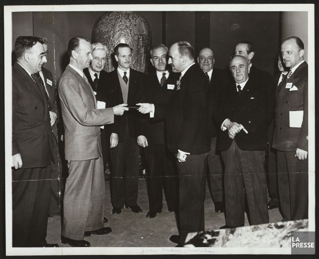 Le dossier illustre Jean Bruchési accompagné notamment de Jean-Marie Gauvreau, Edouard Montpetit, Omer Côté, Léon Lortie, Camilien Houde, Louis Montel, Roger Duhamel, Arthur Tremblay, Sarto Fournier, Mgr Conrad Chaumont, Gérard Morisset, Jean-Jacques Lefebvre, Jean-Marc Léger, Esdras Minville et Gérard Pelletier