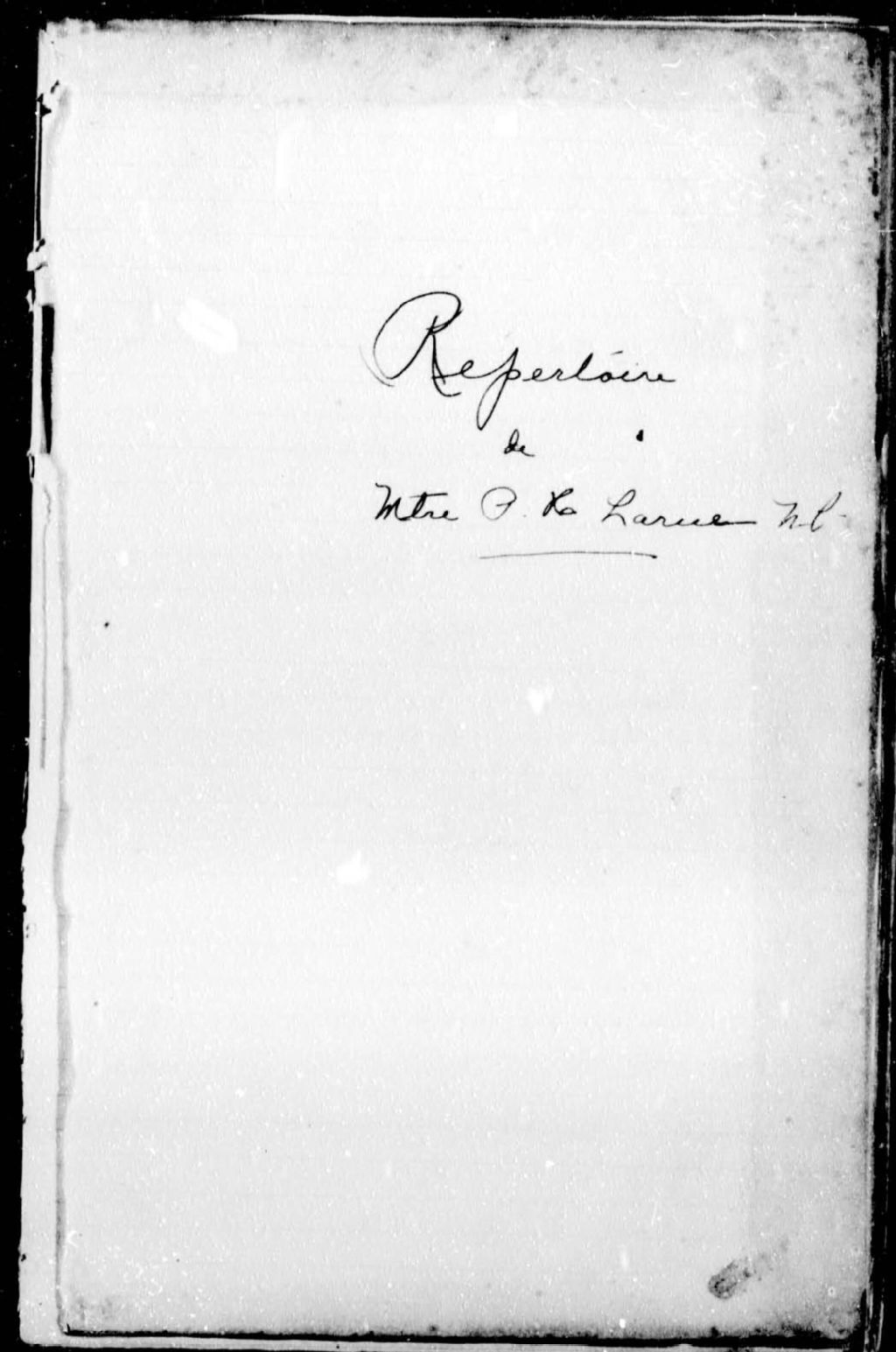 - Cette série regroupe les minutes notariales du greffe du notaire Praxède-Herménégilde Larue (5323 pièces numérotées) et deux (2) répertoires originaux pertinents.Le greffe est divisé est deux (2) séries numérotées. La première, du 27 septembre 1839 au 31 décembre 1847, porte les numéros 1 à 336. La deuxième, du 1 janvier 1848 au 20 février 1889, porte les numéros 1 à 4987.Outre les informations spécifiques aux parties impliquées dans chacun des contrats consignés dans ce greffe, lesquelles peuvent être utilisées, entre autre, dans le cadre de recherches à caractère généalogique, cette série constitue, dans un premier temps, une source documentaire intéressante sur le mode de fonctionnement de la société. D'autre part, prises dans leur ensemble, les données colligées dans ces documents officiels à contenu administratif et légal peuvent également constituer une source documentaire des plus révélatrices sur le mode et les conditions de [...]
