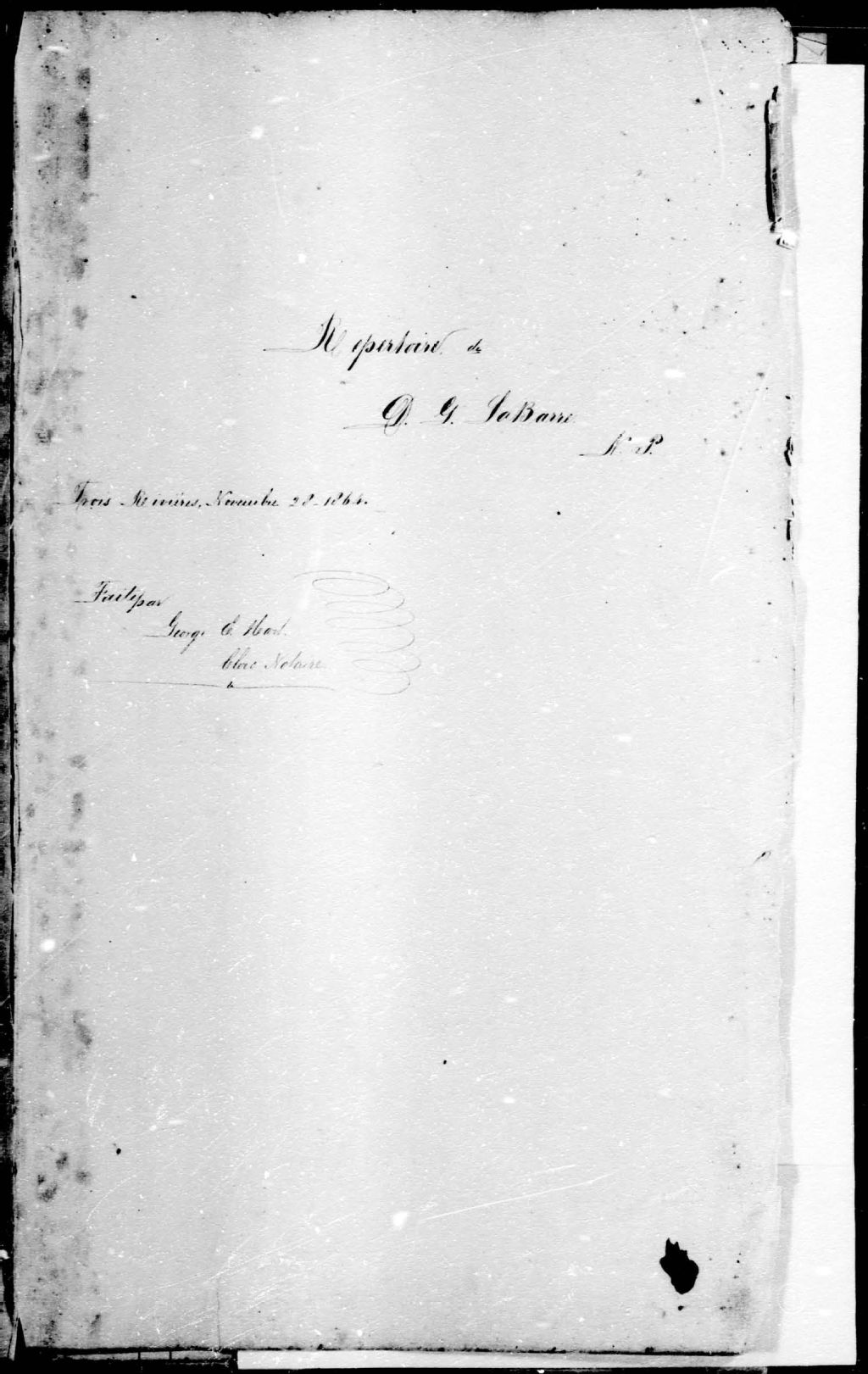 - Cette série regroupe 7035 minutes notariales du greffe de Denis Genest dit Labarre ainsi qu'un répertoire onomastique. Les minutes sont numérotées de 829 à 7135. Les numéros suivants ont été omis : 6087 à 6186. De 1834 à 1892, le notaire Genest dit Labarre a exercé à Trois-Rivières (du 9 février 1834 au 9 janvier 1892).Prises dans leur ensemble, les données colligées dans ces documents officiels à contenu administratif et légal peuvent constituer une source documentaire des plus révélatrices sur le mode et les conditions de vie de la population pendant cette période (métiers et professions mentionnés aux contrats, inventaires de biens, testaments), sur les classes sociales (mention de titres correspondant au rang social des parties concernées tels bourgeois, écuyer, etc), sur les moeurs et coutumes acceptées par la société et ses institutions (par le biais de déclarations, de jugement arbitral, d'injonctions, d'ordonnances, etc), et, [...]