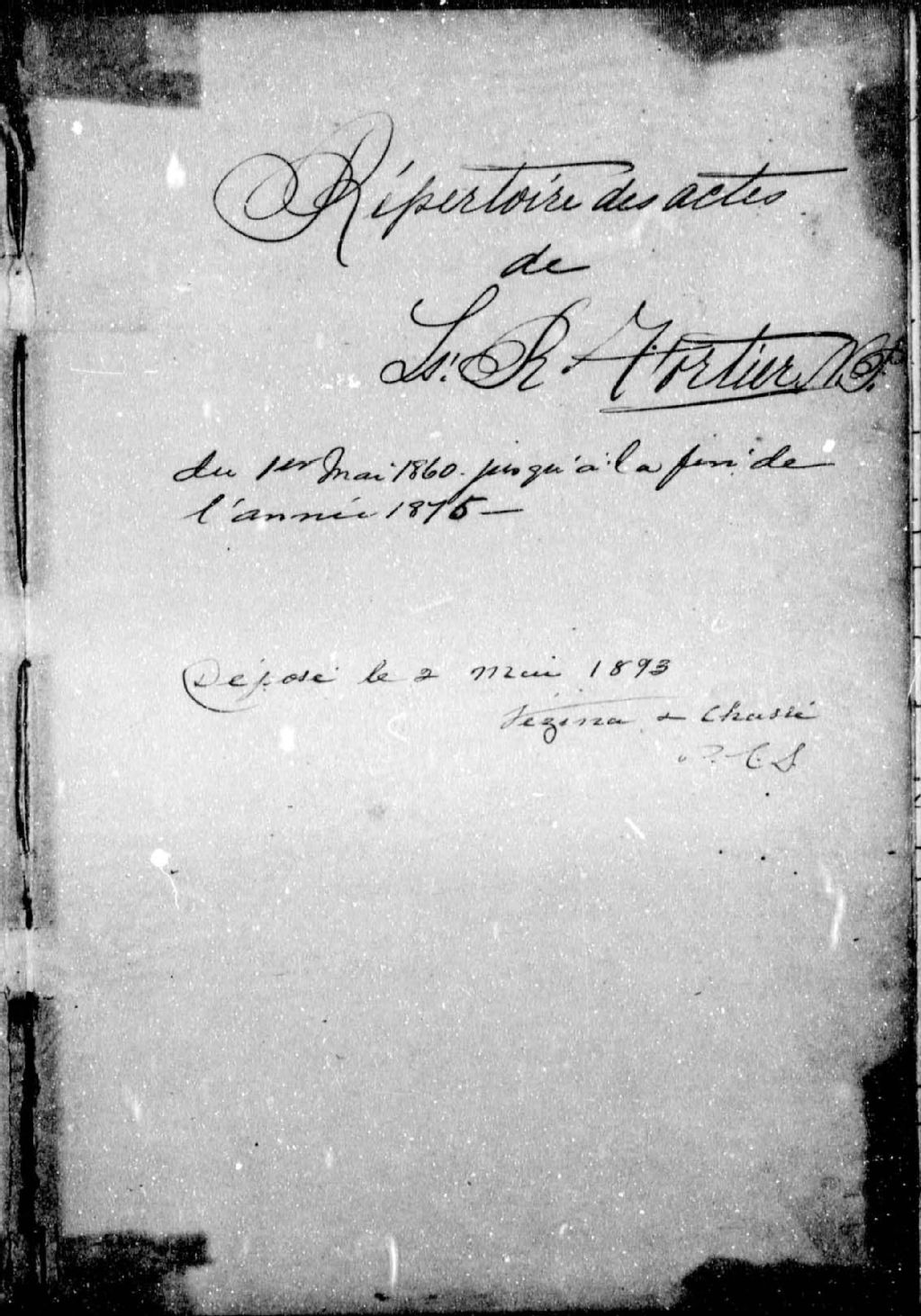 Louis-Romuald Fortier, 1860-1892, Archives nationales à Québec, Fonds Cour supérieure. District judiciaire de Beauce. Greffes de notaires, (03Q,CN306,S19).