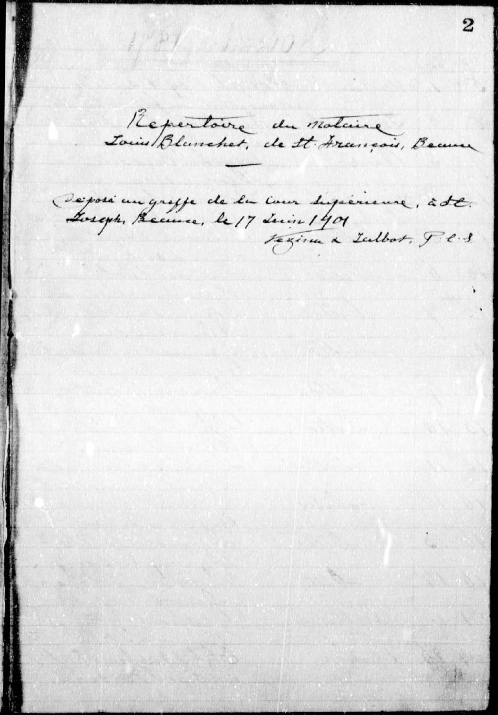 Louis-Cyprien Blanchet, 1871-1897, Archives nationales à Québec, Fonds Cour supérieure. District judiciaire de Beauce. Greffes de notaires, (03Q,CN306,S8).
