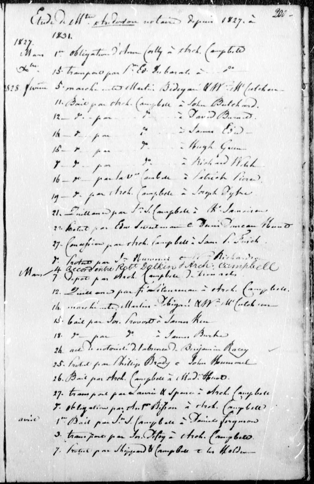 Thomas Petts Anderson, 1827-1831, Archives nationales à Québec, Fonds Cour supérieure. District judiciaire de Québec. Greffes de notaires, (03Q,CN301,S3).